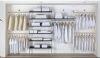 Floor and wall fixed modular system consisting of: matt aluminium frame (30mm diameter); aluminium hanging rails (30mm diameter); and colour matched connectors and brackets.